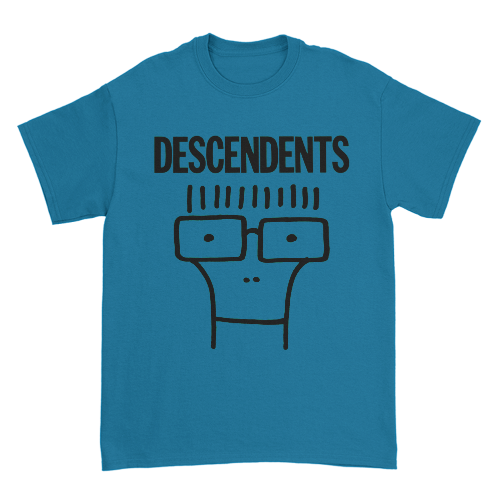 The Descendents Classic Milo design, printed on a sapphire blue t-shirt.